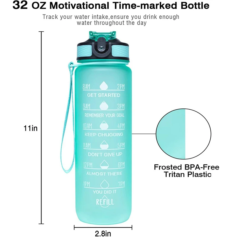 With unique inspirational quote and time markers on it,this water bottle is great for measuring your daily intake of water,reminding you stay hydrated and drink enough water throughout the day.A must have for any fitness goals including weight loss,appetite control and overall health.