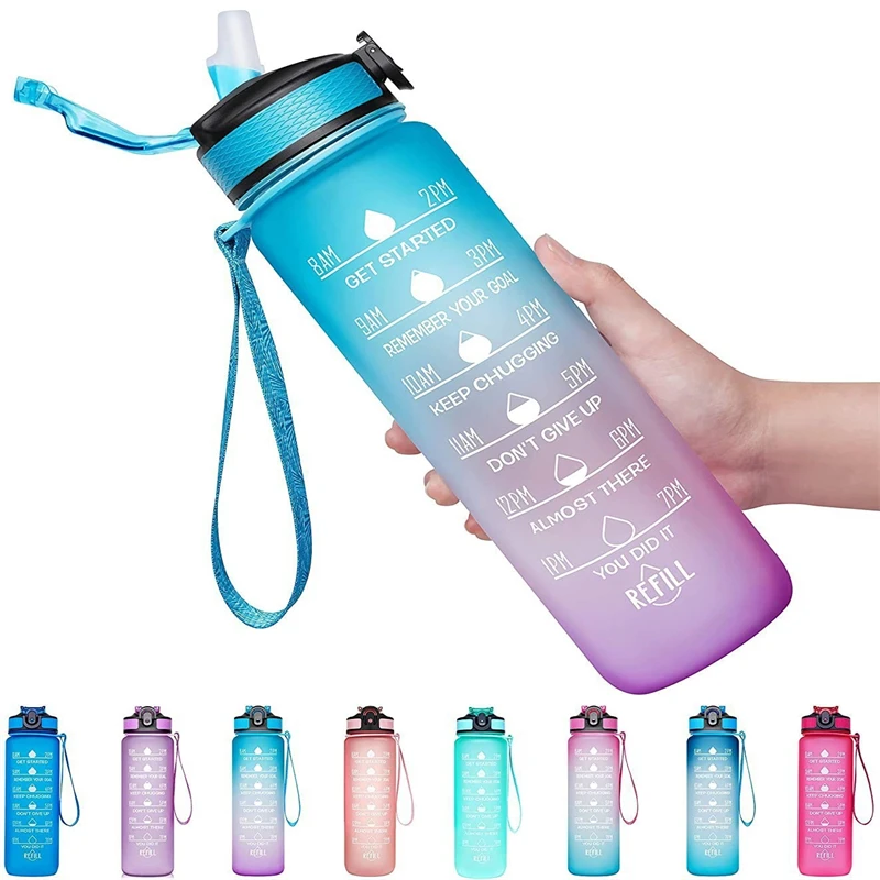 Portable Water Bottle Motivational Sports Water Jug with Time Maker Leak-proof Cup for Outdoor Sport Fitness