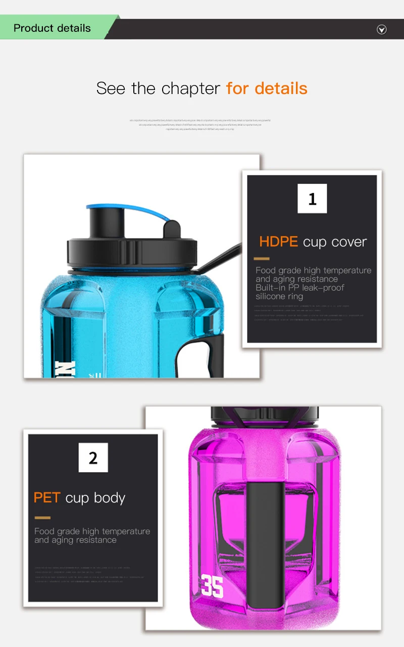 2.4L Large Capcity Water Bottle Transparent Shaker Bottle with Handle Outdoor Fitness Running Gym Training Sports Bottles – ET Junction