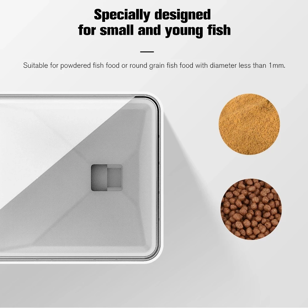 Specially designed for small and young fish, suitable for powdered fish food or round grain fish food with a diameter less than 1mm.