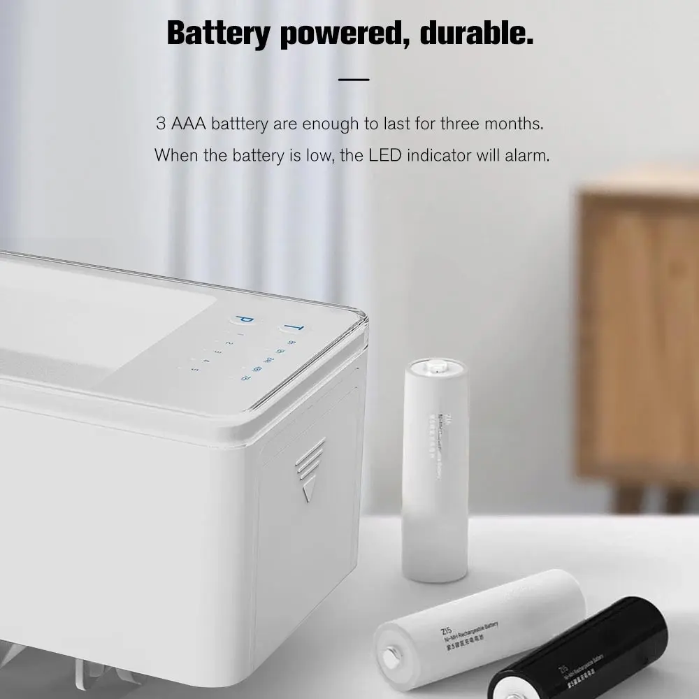 Battery-powered, durable. 3 pcs AAA batteries are enough to last for three months. When the battery is low, the LED indicator will alarm.